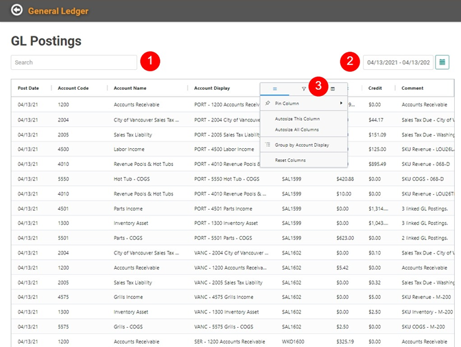 - You can use the same controls as found in LOUs Reports to organize and export the GL.