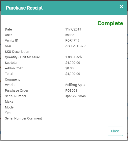 Once you create the Manual Receipt, the SKU quantities will be updated in Inventory, the FIFO Log for the SKU will be updated, the appropriate GL accounts will reflect the transaction, and the Receipt will appear on the Purchase Receipts page for reference.
