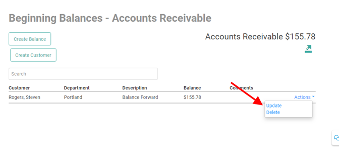 The balance you created will now appear on the Beginning Balances – Accounts Receivable page. Repeat these steps for each balance you want to create.