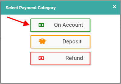 2. A box will pop up, asking you to select the Payment Category. For this example, we’re choosing On Account.