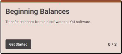 LOU has three categories for Beginning Balances: Inventory Valuation, Accounts Receivable Balances, and Customer Deposits.