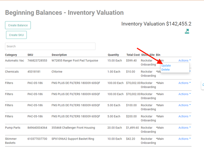 Unlike Imports for Customers, Vendors, and Inventory, you cannot rollback a Beginning Balances import. If you need to undo Beginning Balances, these must be done one-by-one through the Beginning Balances – Inventory Valuation screen. Click the Actions link to Update or Delete a Beginning Balance.