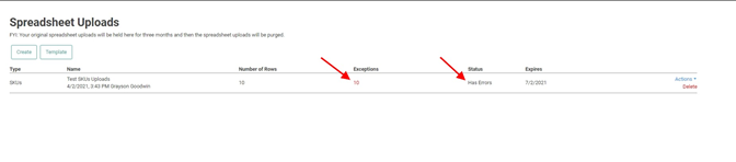 If you have a file that is all Exceptions, or you determine you don’t want to complete the Import for any reason, you can simply click the red Delete button and it will delete that Upload from the queue.
