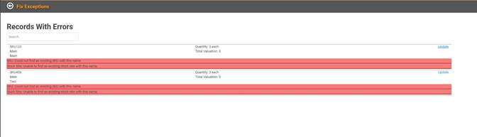 To correct the error, you can click Update on the line item. A box will pop up with all the fields from the template. You can change, add, or delete data from the fields. You can Save the changes or just Delete this line item entirely.
