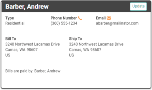 This box contains the Customer information and demographics. You can Update the information if necessary.