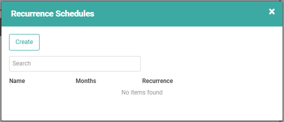 The created recurrence will appear on the Recurrence Schedules box. If you need to add an additional recurrence, repeat the steps above. To return to the REO Update Page, click the X in the upper right corner. You can use the Actions link next to the Recurrence to Update, Delete, or view a Schedule Projection.