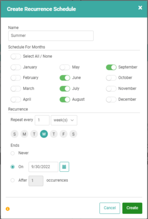7. Confirm Recurrence now includes November and December and no additional changes need to be made.