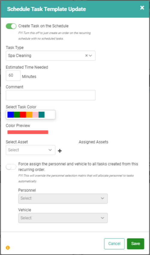• IMPORTANT! If you force assign Personnel here, LOU will not use the Recurring Order Personnel Assignment round robin. If you need to update the Personnel for this REO, and you’ve forced a Personnel assignment, you will need to go into the REO and update the Personnel, as well as any currently scheduled tasks.