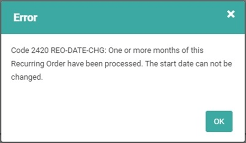 If you attempt to change the Start Date on an Active REO that has already been processed, you will receive an error message letting you know the Start Date cannot be changed.