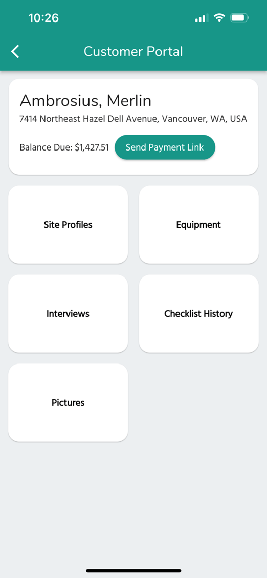 If the Customer has a Site Profile(s) set up, you can access them here. When you tap the Site Profile box, all Site Profiles for the Customer will display. Tap the one you want to view and it will expand to show you the information.