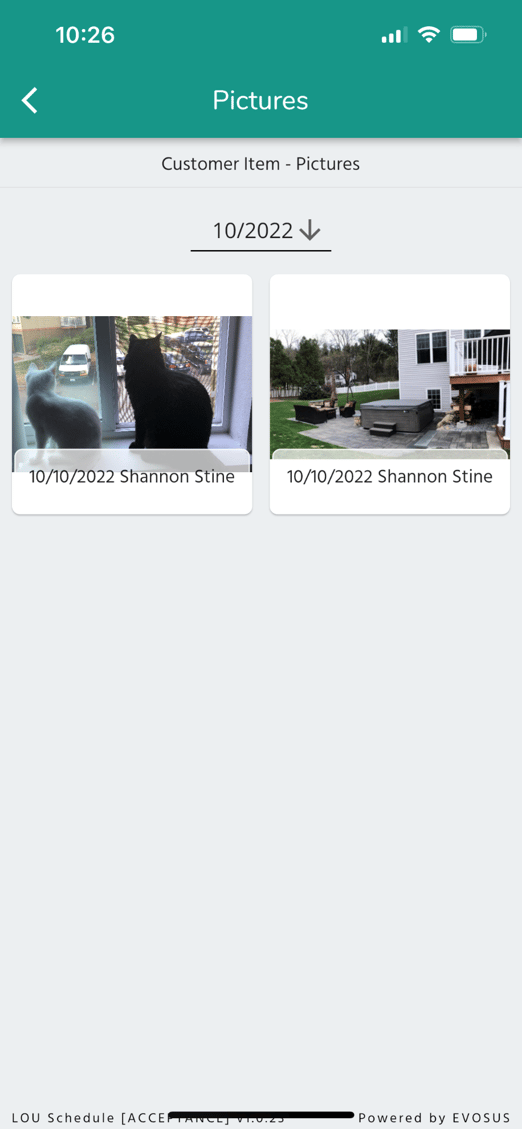 - Pictures: Take pictures that will automatically save to both the Order and Customer Profile. You cannot add Pictures from your device to LOU Schedule. You can only take new Pictures using the LOU Schedule Camera from this page.
