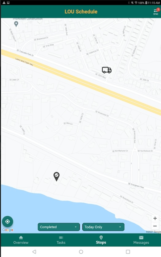 - Pins and a truck will appear on the map. Your location is the truck and the Pins are your Tasks.