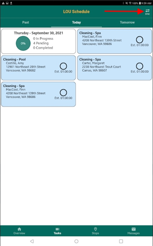 LOU Schedule and LOU Web need to remain in sync, since people are working in both applications. It’s a good idea to Sync Data when you first log into LOU Schedule, any time you’ve been out of cell service range and return, and after completing each Task. This ensures that every step of the way, the information in LOU Schedule and LOU Web remain in sync for your Tasks.