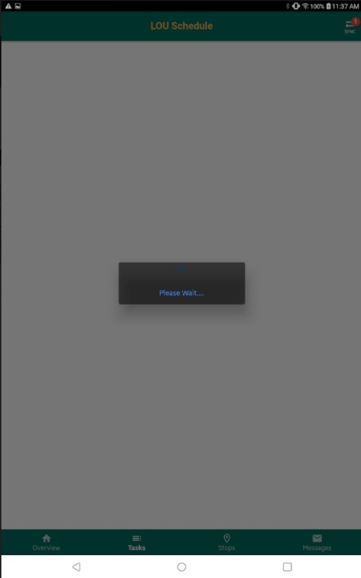 When you tap the Sync button, the screen will gray out with a progress meter while it syncs with LOU Web.