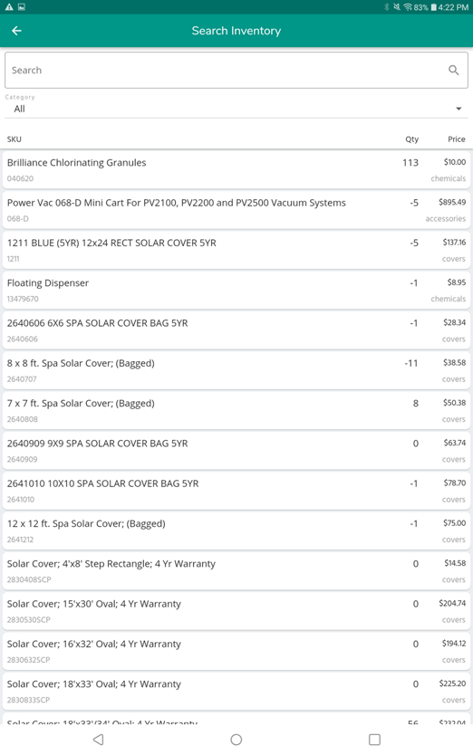 You can swipe up and down to scroll through the SKUs. You can also search keywords.