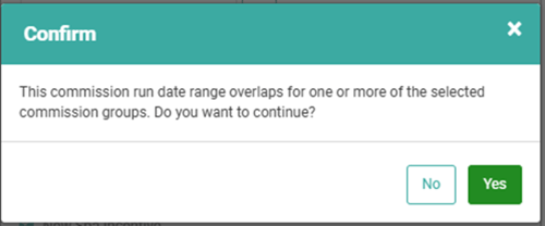 - A confirmation message will pop-up, asking if you’re sure you want to run commissions for the selected groups. Click OK