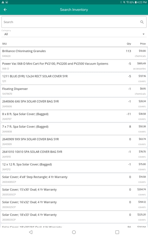 You can swipe up and down to scroll through the SKUs. You can also search keywords.