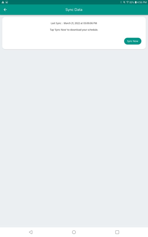 Tap Sync Now to sync data now. Once the sync is complete, you will get a confirmation message indicating the sync is complete. Tap OK to return to the Sync Page.