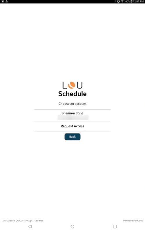Use this button to select another user activated on this device OR request access for another user on this device.