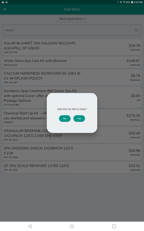 Tap a SKU and you will be asked to confirm you want to add the SKU to the Order.
