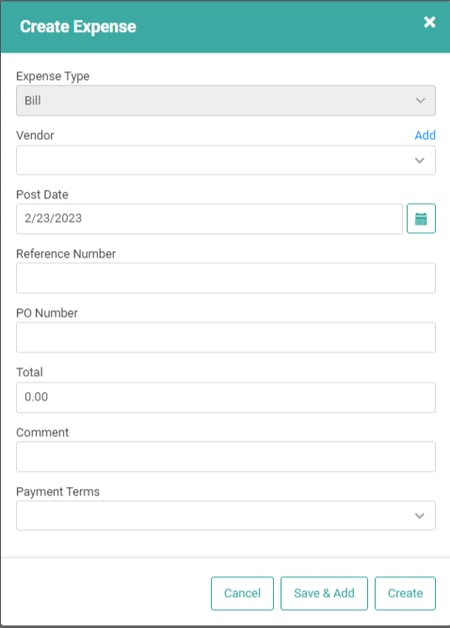 The Bill Expense Type adds an additional field allowing you to select Payment Terms.