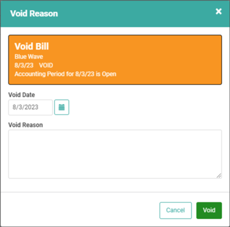 - Choose the Void Date. (You can choose any date from the original Post Date forward. You cannot choose a date prior to the Post Date.)
