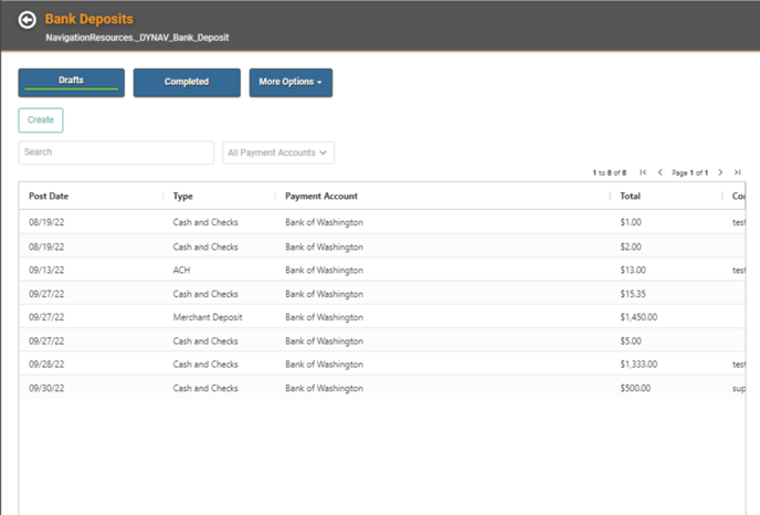 These are Deposits you’ve created but have not posted yet. Creating Drafts allows you to Update and Add data by coming back to the record multiple times if needed. When you’re satisfied the Deposit is complete, you can Post the Draft and it will move from Drafts to Completed.