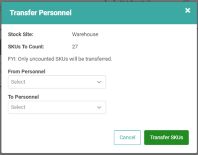 Once you’ve assigned Personnel to the list, you can quickly transfer their uncounted SKUs to another Personnel by clicking Transfer SKU Personnel.