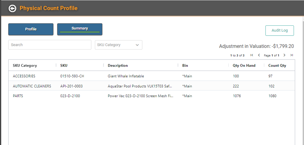 This Completed Physical Count will move from Pending to completed on the main Physical Count page and any relevant Inventory Reports will be appropriately updated with Adjustments.