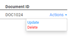 The Actions link next to the SKU line item allows you to Update or Delete the SKU and Update the SKU Vendor Cost.