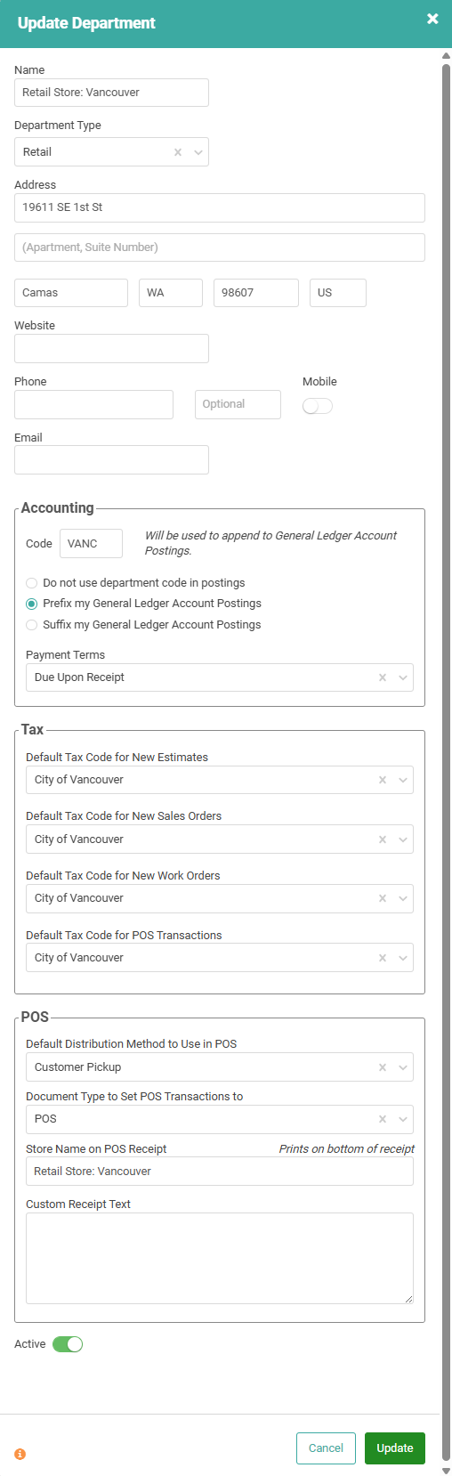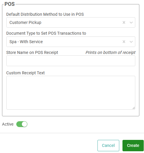 4. Enter POS information, including custom POS Receipt Text.