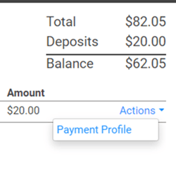You can click the Actions link on a Deposit line item to visit the Payment Profile for that Deposit.
