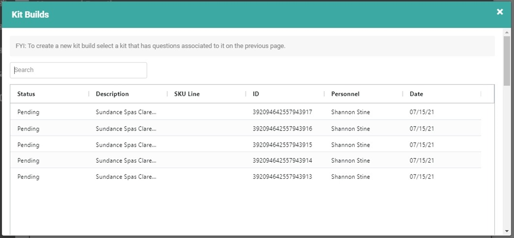 If you have multiple Kit Builds saved, clicking this link will pull up a list of the Kit Builds from which you can select to continue building the Kit.