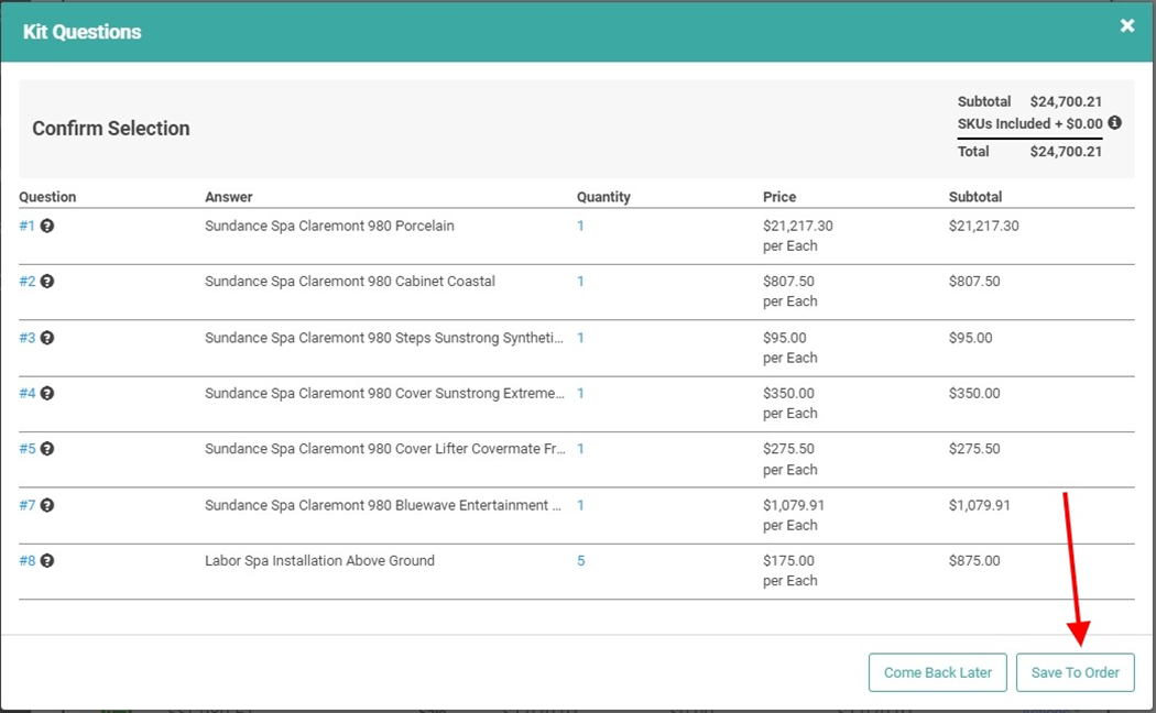 Once you’ve answered all the Questions and you’re finished building this Kit, click Save To Order.
