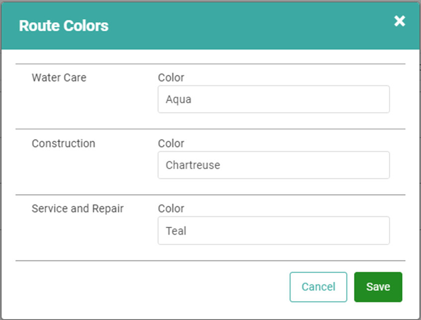 From the Routes screen, you can create new Routes, Configure the Route Colors, see your Routes on a map, and Test Routes. You can also Update and Delete existing Routes through the Actions link next to each Route.