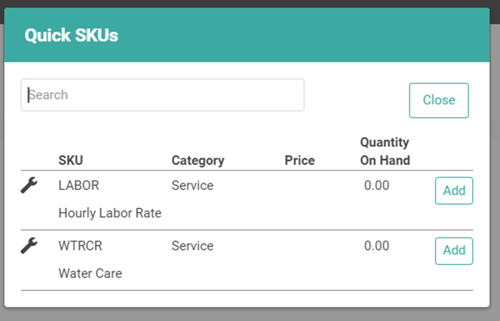You can add additional Labor SKUs that weren’t accounted for on the Order by selecting the SKU, Personnel associated with the SKU, and Quantity in the Bill Labor box. Make sure to click the Plus Sign to add to the Order.