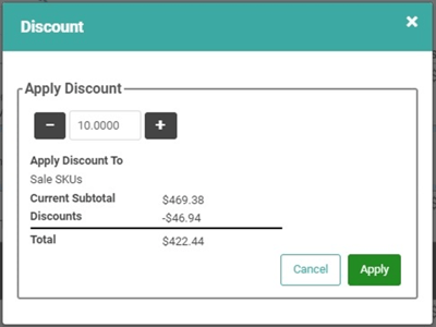 Once you click Apply, the Discount will be reflected on each SKU, totalling the percentage off the Total you selected. In this case, 10%.