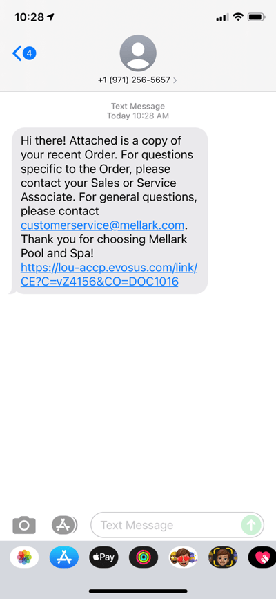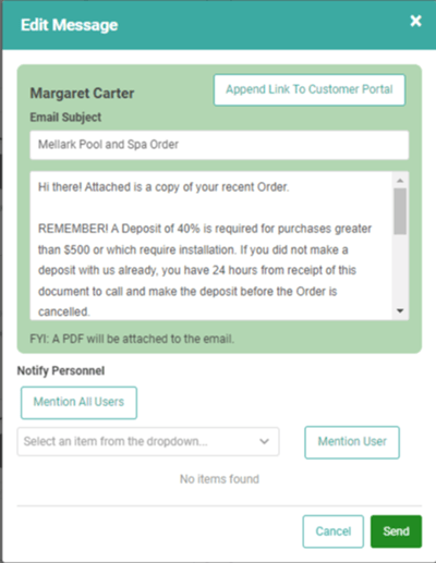 REMEMBER! You do not have to click this button for your Customer to view the Sales Order electronically. The Email or Text will automatically include a link directly to the Work Order.