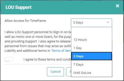 If, for any reason, you want to revoke Support’s access, simply return to Operations / LOU Support.