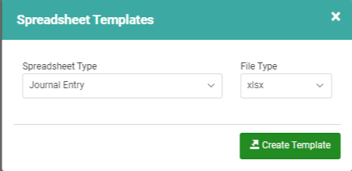 In addition to manually creating a Journal Entry, you can use a spreadsheet import. These imported Journal Entries will upload to Drafts. When you click Create From Spreadsheet, you’ll go to the Spreadsheet Uploads/Import Data page.