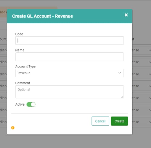 3. Create: This allows you to create the GL account if it’s not in the dropdown.