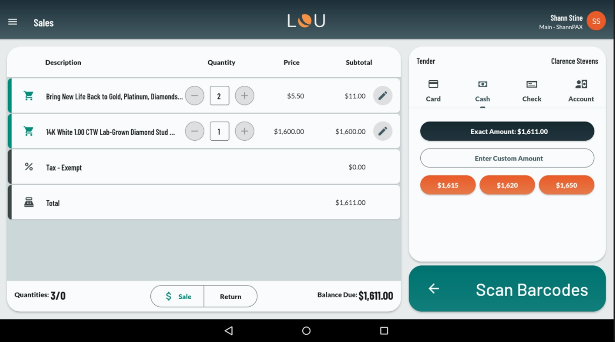 - Your Customer just asked if they could add one more thing on? No problem! Tap the Scan Barcodes button to go back to the Sales Transaction page and add more SKUs or make changes.