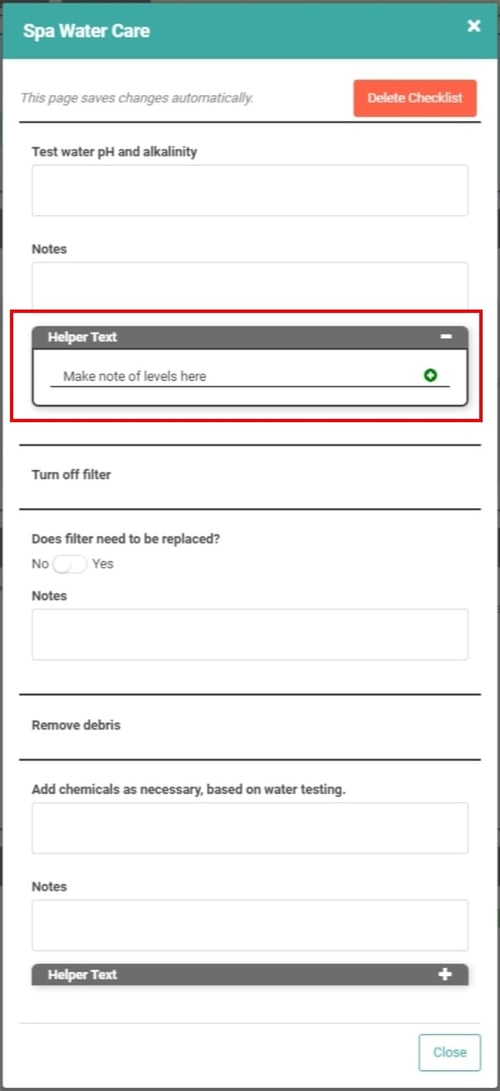 Click the Plus Sign to expand the Helper Text. If configured on the Checklist Template , this Helper Text is meant to guide you on how to answer the Text/Notes Prompts.