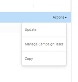 . You will be taken to the Drip Campaign’s Drip Campaign Task page to make changes to the Tasks associated with this Drip Campaign. Use the LOU back arrow to return to the Drip Campaign Page. In addition to Updating the Drip Campaigns, the Actions link will also allow you to Manage Drip Campaign Tasks, which takes you to the Drip Campaign Tasks page for that campaign; or copy the Drip Campaign. Copying an existing Drip Campaign is a quick way to create a new Drip Campaign that includes the same features as an existing Drip Campaign. Click Actions and Copy.