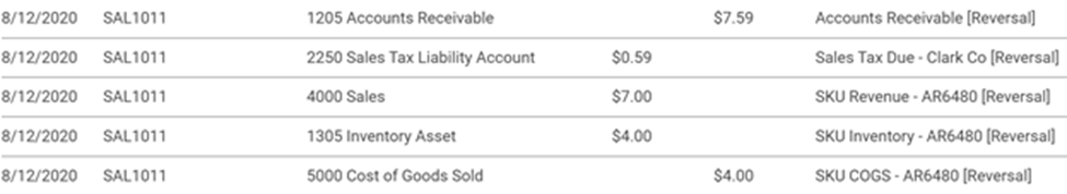- The tax amount, $0.59 posted to the Sales Tax Liability Account