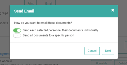 - Email will let you determine whether to email each Personnel their documents or email everything to a specific email address.