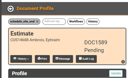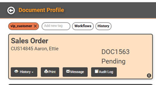 Once the Workflow is added to the Profile, the first step Tag will appear in the row of Tags on the Profile.