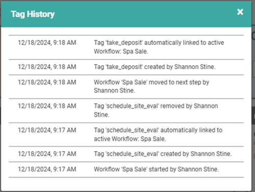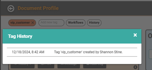 You can quickly see who added or deleted a Tag from a Profile by clicking the History button. It will list all Tag History for this Profile.