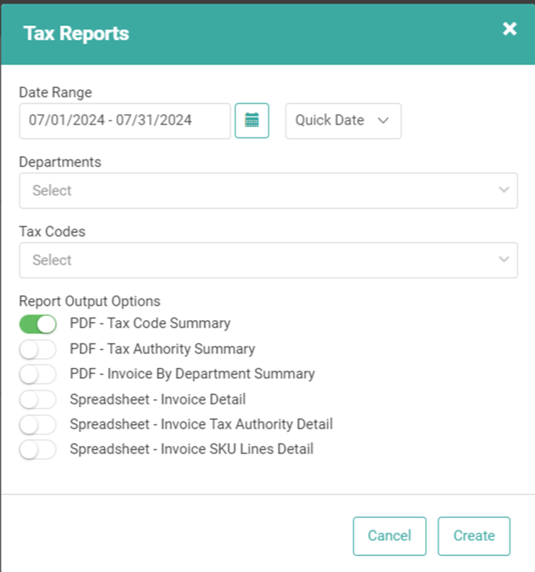 - PDF – Invoice by Department Summary gives you a summary of tax information by Invoice and Department.